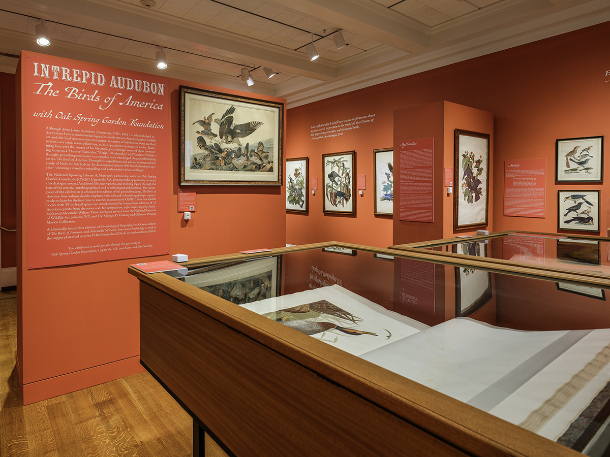 In an exciting partnership with Oak Spring Garden Foundation (OSGF), in Upperville, VA, the National Sporting Library & Museum (NSLM) is organizing Intrepid Audubon: The Birds of America to be held at the NSLM’s Museum. The exhibition and accompanying catalogue will explore the creation of the seminal publication, The Birds of America (1827–1838), by John James Audubon. The self-taught artist’s expeditions as a hunter-naturalist and ornithologist to document 489 North American bird species, created a stunning avian catalogue. Although he is acknowledged today to have been a controversial figure and enslaver, Audubon's work remains foundational to wildlife art and the bird conservation movement.